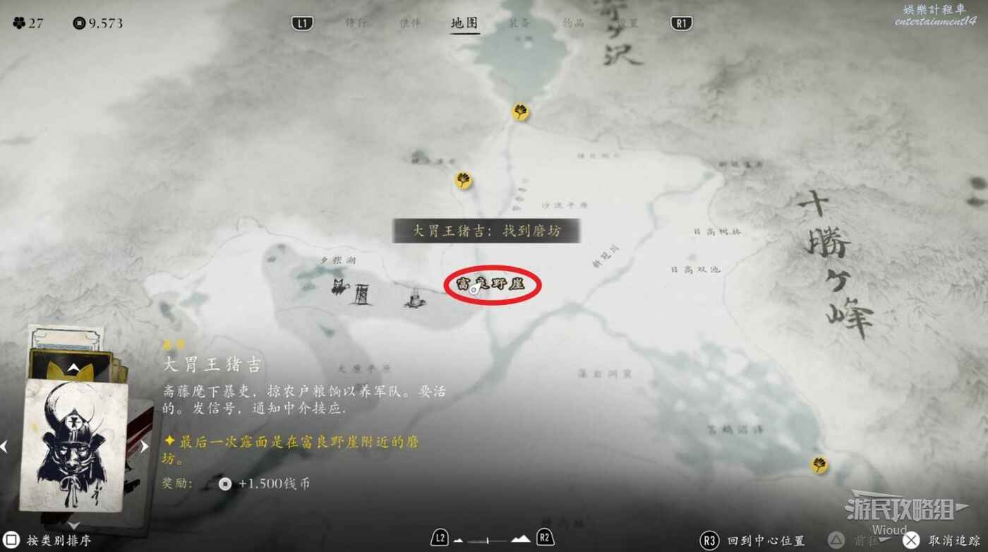 傳送到富野良客棧,客棧左邊和這個大治郎對話,跟著他去客棧二樓玩小遊戲。