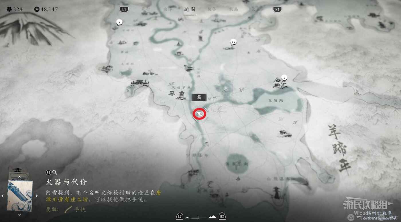 畫面一轉,一群浪人過來襲擊橋樑,直接過去把他們幹掉,和商人對話再和橋上的武士對話完成任務。