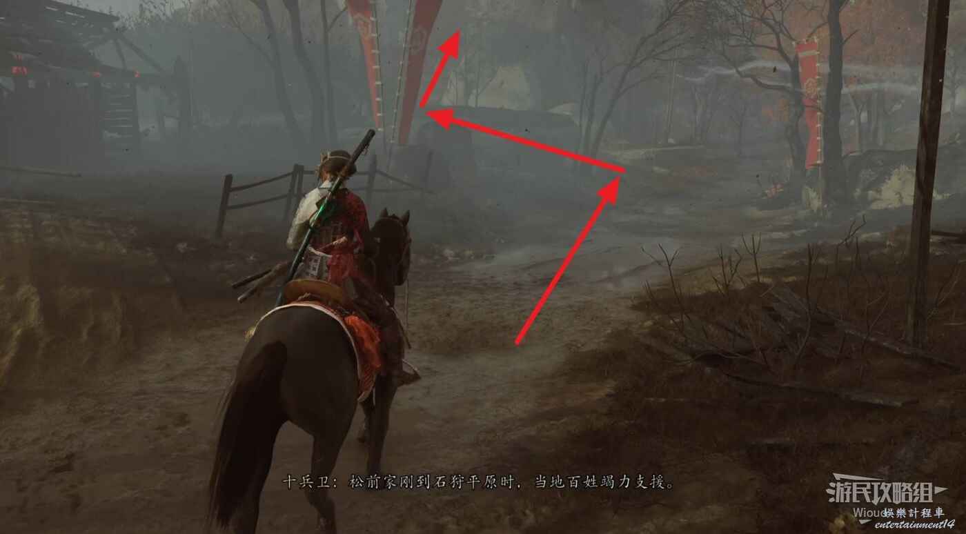 不一會十兵衛也過來,看完劇情出門和十兵衛一起幹掉來襲的敵人,跟著他走到馬匹的位置。