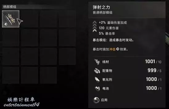 2、彈射之力模組屬於普通柄部模組,效果是暴擊時施加衝擊效果。
