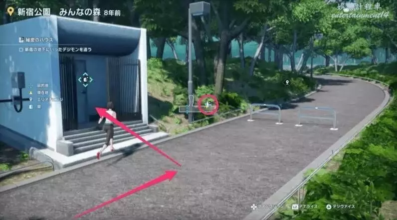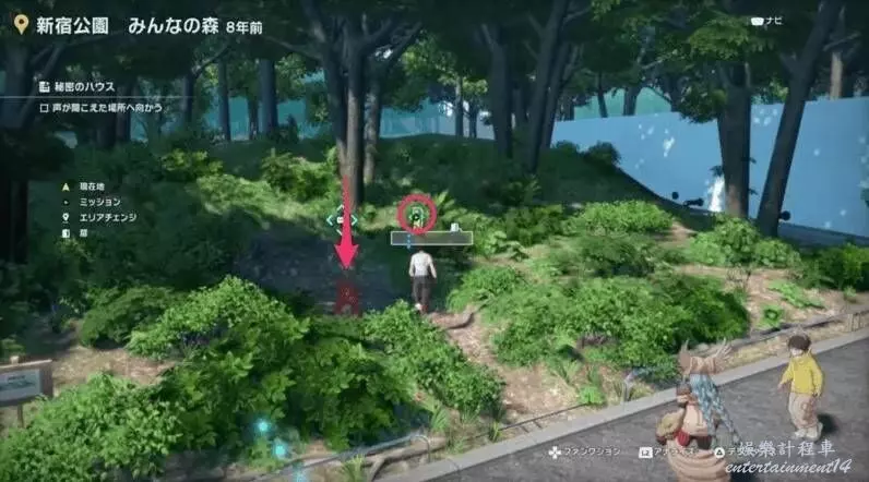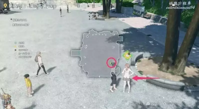 作為新宿中央公園的調查任務,與位於北側的城木明日奈對話。