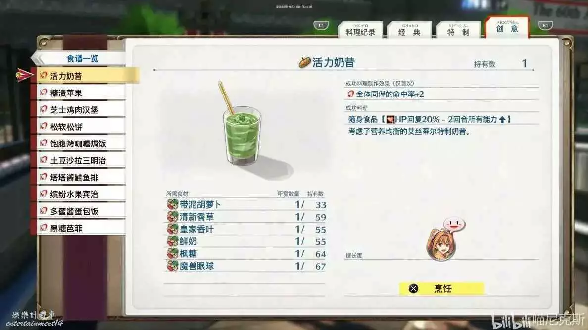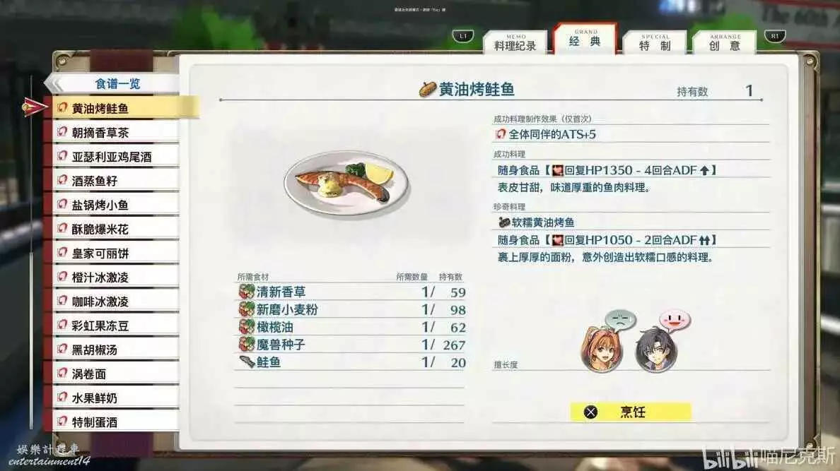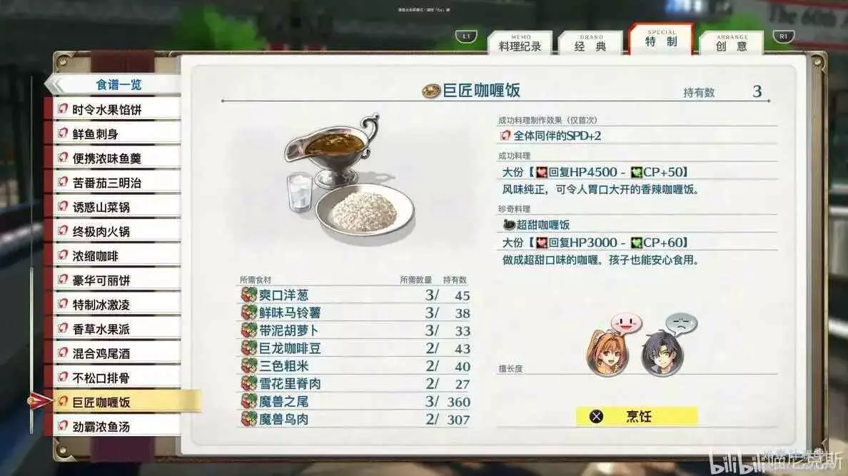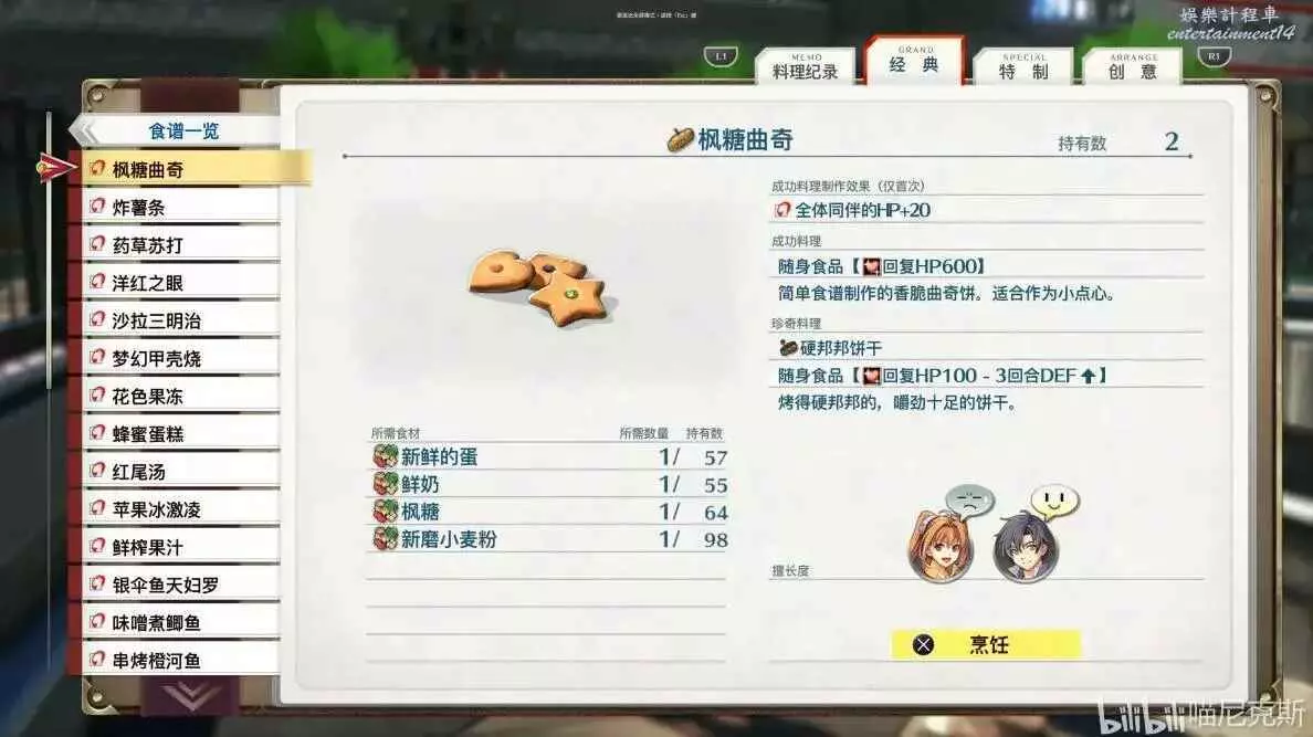 空之軌跡 the 1st 敵人及食譜列表一覽