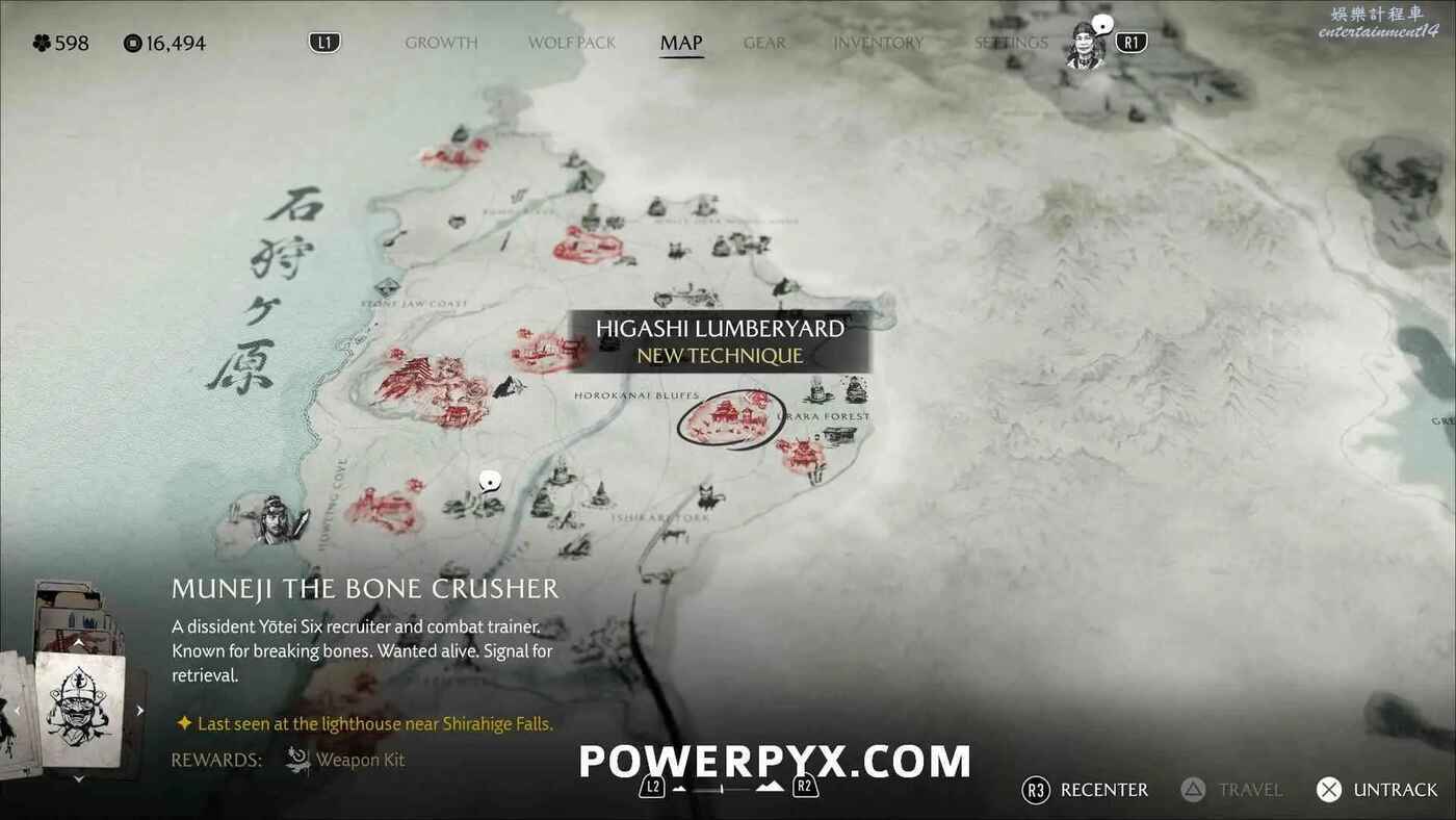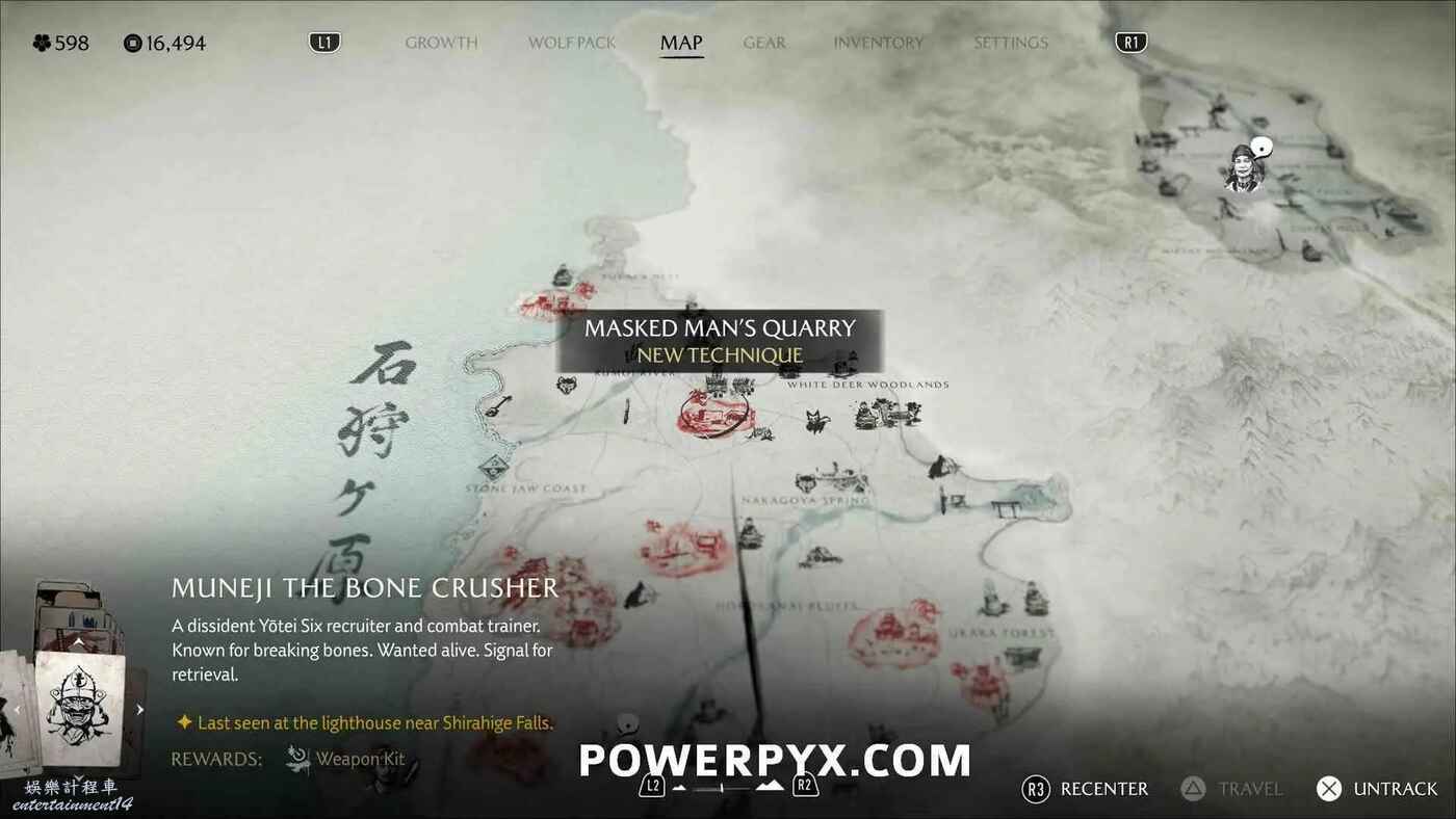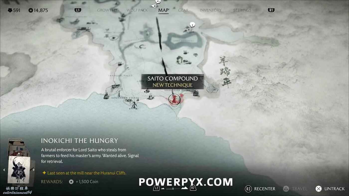 此為隱藏的敵人營地,需要前往地圖最北邊的【稻荷岬神社】(地圖上標記位置)才能進入。抵達後可發現一道上鎖的大門,需要點亮兩盞帶有三叉戟圖示的狐狸燈籠。先穿過大門右側帶有藍色標記的岩縫,進入洞穴房間後右轉拿取火把,點燃洞內的狐狸雕像。返回室外,再穿過大門左側岩縫,點燃裡面帶三叉戟圖示的狐狸燈籠。