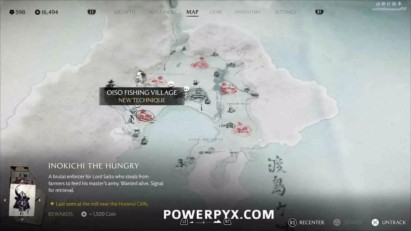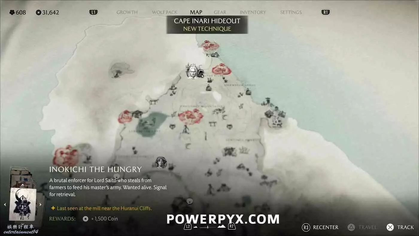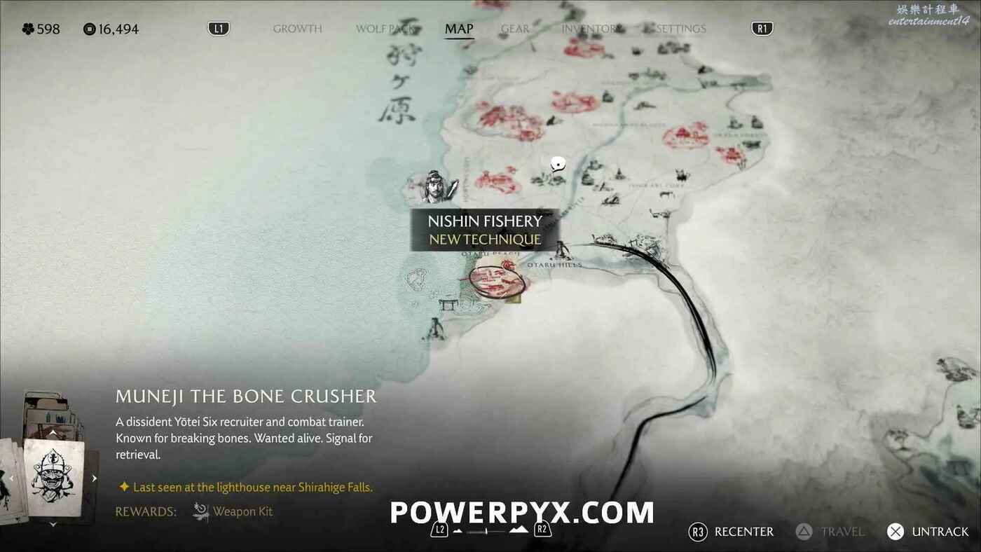 此為隱藏的敵人營地,需要前往地圖最北邊的【稻荷岬神社】(地圖上標記位置)才能進入。抵達後可發現一道上鎖的大門,需要點亮兩盞帶有三叉戟圖示的狐狸燈籠。先穿過大門右側帶有藍色標記的岩縫,進入洞穴房間後右轉拿取火把,點燃洞內的狐狸雕像。返回室外,再穿過大門左側岩縫,點燃裡面帶三叉戟圖示的狐狸燈籠。