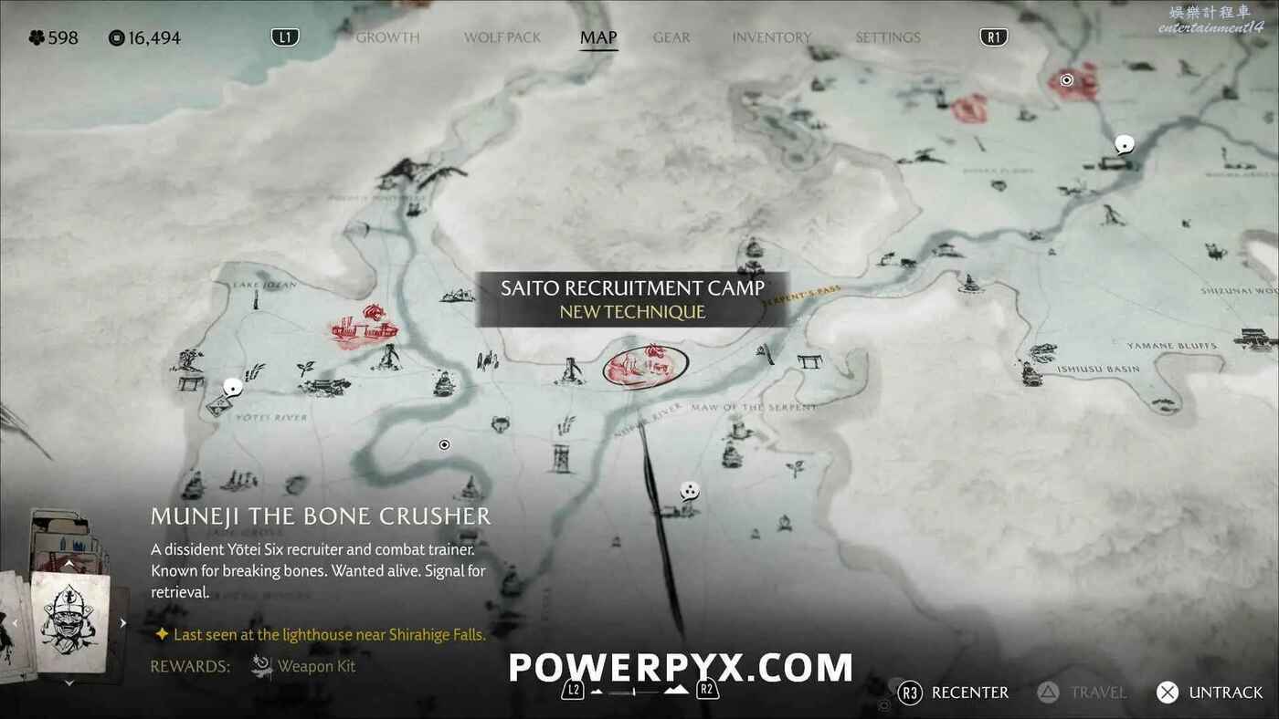 並非所有標紅的營地都計入獎盃所需的22個羊蹄六人幫營地,選中計入獎盃的營地時獎勵欄會顯示金色的文字(通常為新技能)。不計入獎盃的營地與某些支線任務有關。每個營地都設有一座靜思祭壇,可以提供技能點用於解鎖新技能,因此完成所有的22個羊蹄六人幫營地也可以自動解鎖22座靜思祭壇,記得向下滑動觸控板來祈禱。另外,天鹽山脊區域的營地還能找到九尾機關盒。