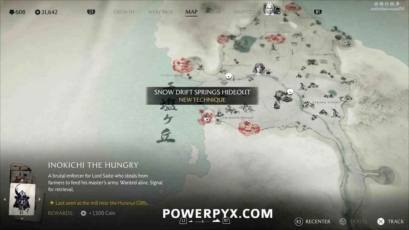 此處為隱藏營地,需要先前往天鹽山脊西北部的雪枯神社(地圖上有標記)。到達神社後先清掉周圍的敵人,然後解救俘虜,接下來需要解開神社謎題才能開啟通往隱藏營地的道路:在左側區域拿起火把,點燃上方懸掛著點亮燈籠的兩個燭台。在右側區域調整狐狸雕像的方向,使其與牆上雕刻的石狐朝向完全一致。