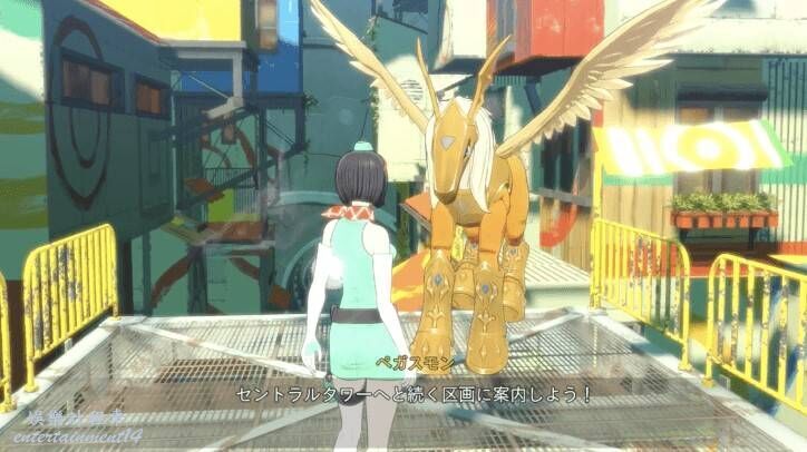 2.從中央島前往中央塔:入口處。電梯前會有兩隻躺著的數碼獸,與右側的數碼獸對話找到另一隻齒輪獸