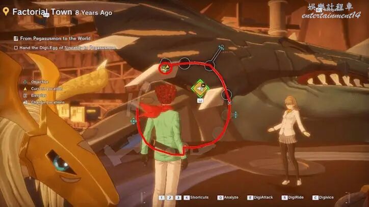 觸發方式:解鎖後,神聖計畫(Digivice)會收到天馬獸的消息,前往中央城:商業區(Central Town: Downtown)與天馬獸對話。