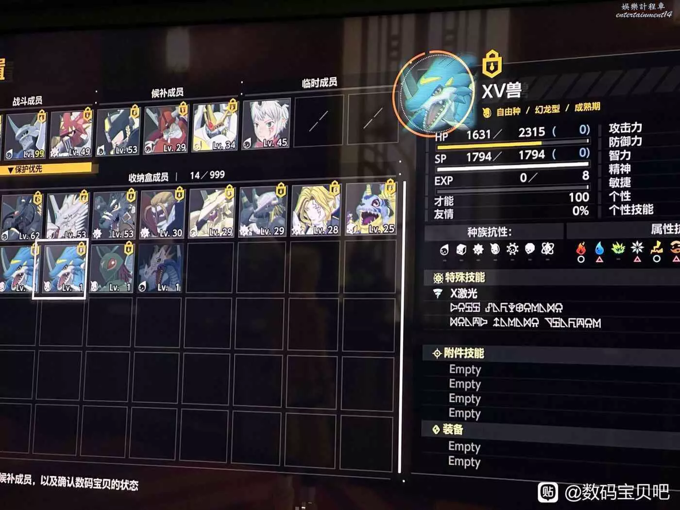 數碼寶貝物語 時空異客 滿才能數碼獸刷取方法 6 10 月 2025-10-06 廣告 作者:奧裡給。 來源:數碼寶貝吧 剛剛進化編號420的巨大古加獸,才能是100,發現退化可以變成恐蜂獸,恐蜂獸又是由飛蟲和XV合體進化而來,所以恐蜂獸再退化就可以變成這兩隻,於是你就擁有了滿才能的XV和飛蟲。後面我又用飛蟲獸重複這一流程,於是我現在有兩隻滿才能的XV獸了。 清楚其他的合體進化是不是這個樣子,估計差不多,一隻變兩隻,無中生有。