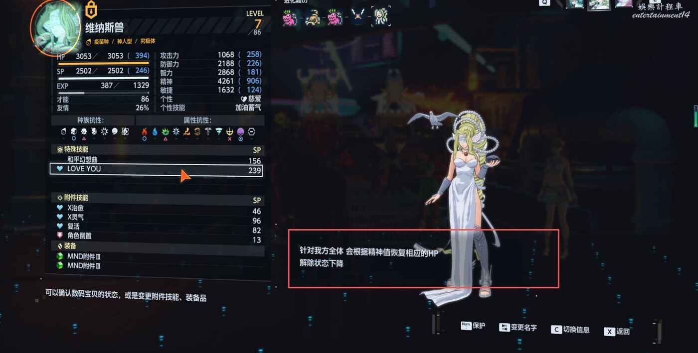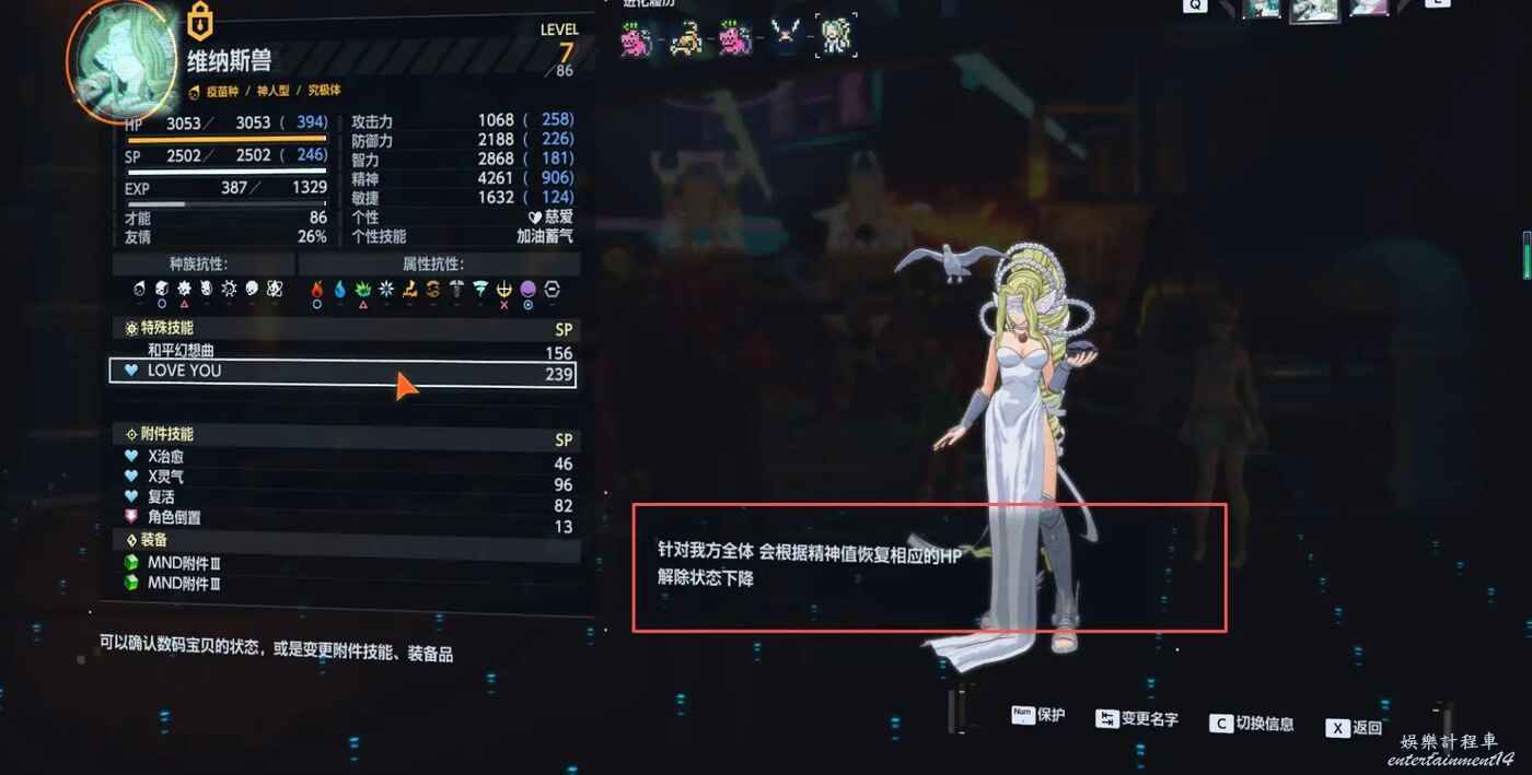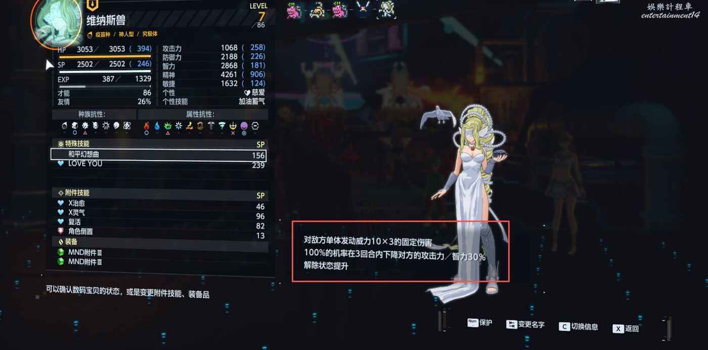 數碼寶貝物語 時空異客 數碼獸陣容搭配推薦 6 10 月 2025-10-06 廣告 作者:卷笙書 來源:數碼寶貝吧 維納斯獸+塞壬獸=智力輸出的輪椅隊友。 1、維納斯①技能減對手雙攻+解buff防止對手疊buff套娃,大幅降低對手輸出能力。 2、維納斯②技能奶全隊的同時可以解除狀態下降,同時如果帶有加油蓄力的特徵技能在奶人的同時可以做到奶血+清狀態+全體上狀態。 塞壬獸二技能破魔抗+降低對方命中,配合維納斯可以做到治療、增傷、負面全套輪椅。 直接把你的智力輸出抬上高速公路。