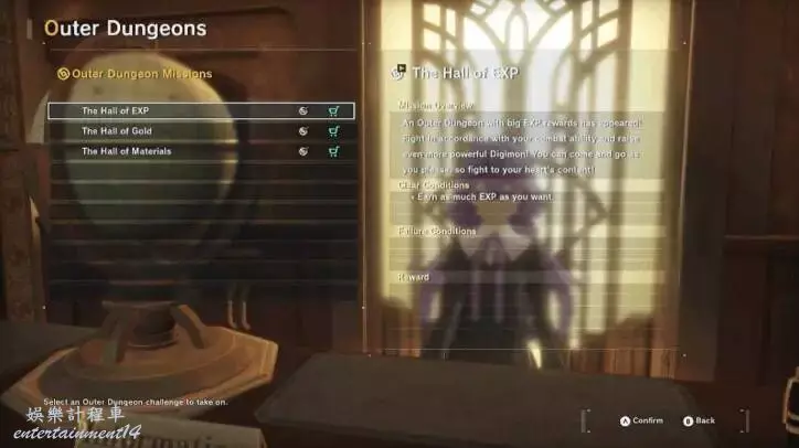 這個迷宮可以讓你與敵方數碼獸戰鬥,盡可能多地獲取經驗值。當你在困難、究極和究極+難度模式下遊戲時需要提升數碼獸等級時,這也很有效。
