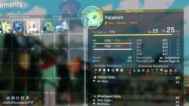 載入強化功能允許你通過用儲備中較弱的素材數碼獸餵養來提升選定數碼獸的等級。