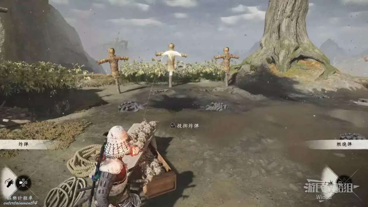 跟著她拿起稻草人旁邊的炸彈,根據教學投擲到稻草人旁邊。