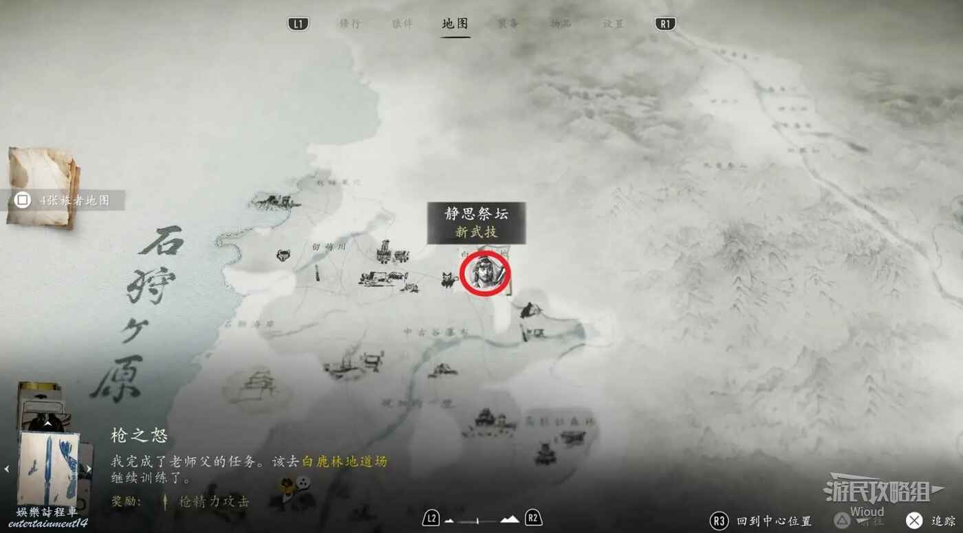 位置如下圖所示,因為此時我們已經完成了槍之怒的所有目標,前往【石狩平原】區域右上角的白鹿營地。