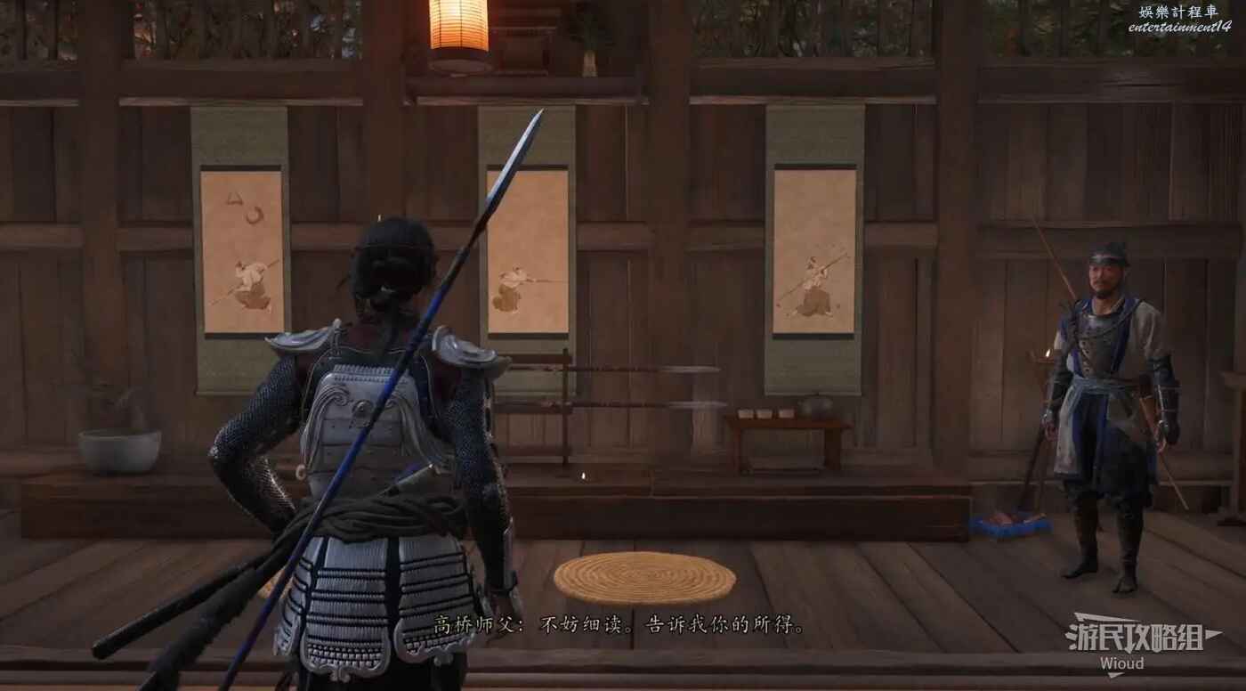跟著師傅進入一棟建築,和之前武器師傅的流程一樣,看完畫對著稻草人用複合鍵攻擊。