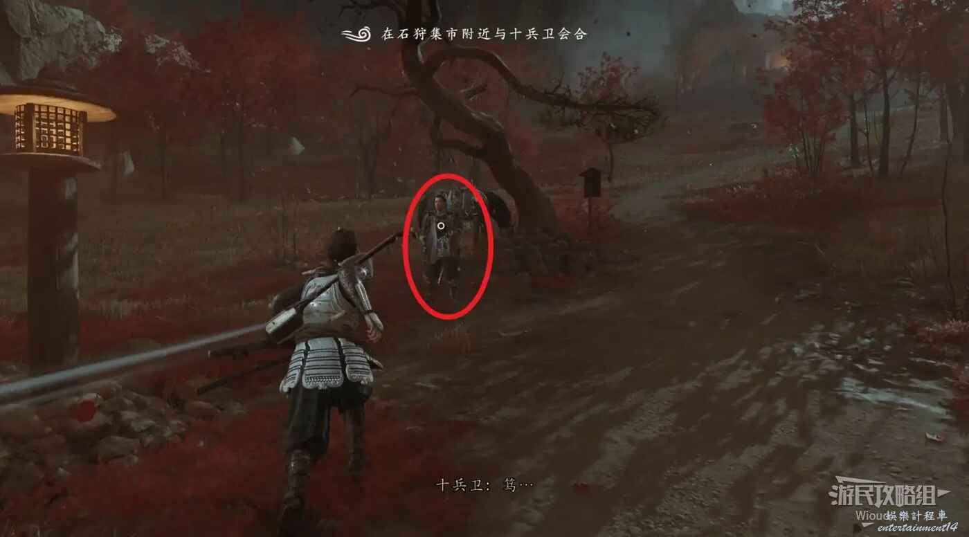 和十兵衛分別後,出去先跟著系統視角觀察周圍環境,然後和對面站著的貫太對話,和他戰鬥。