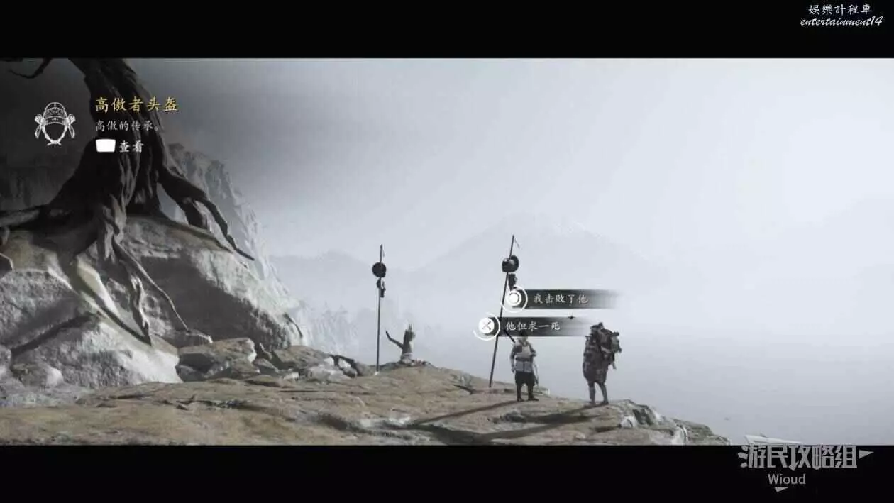 對話選項可隨意選擇,將其擊敗可獲得服裝【不死者鎧甲】、【高傲者面具】。