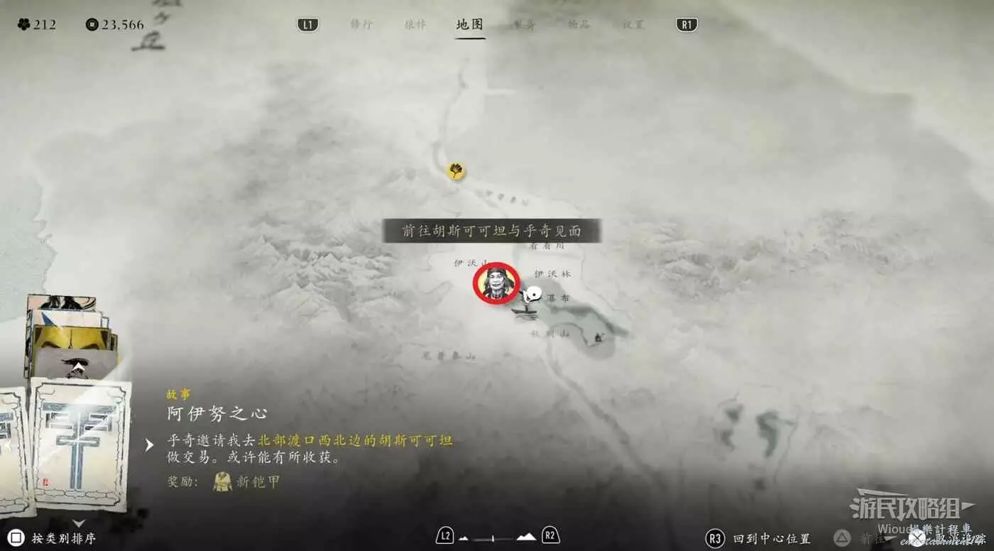 下船後,打開地圖選擇【阿伊努之心】的任務卡,跟隨指引往阿伊努人的村莊走。