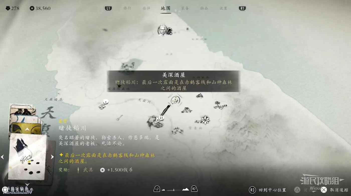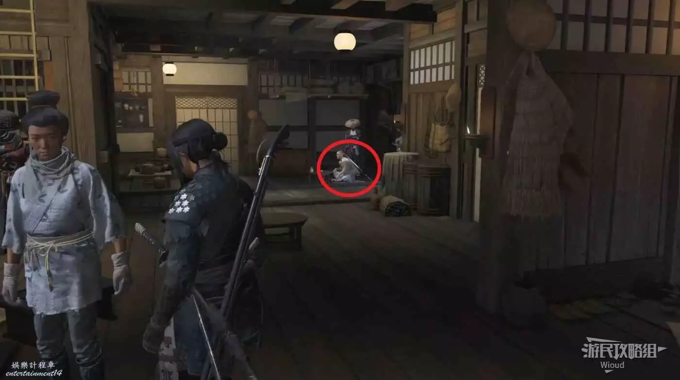 進入酒屋,裡面背刀的就是懸賞目標,和他對話玩彈硬幣遊戲。