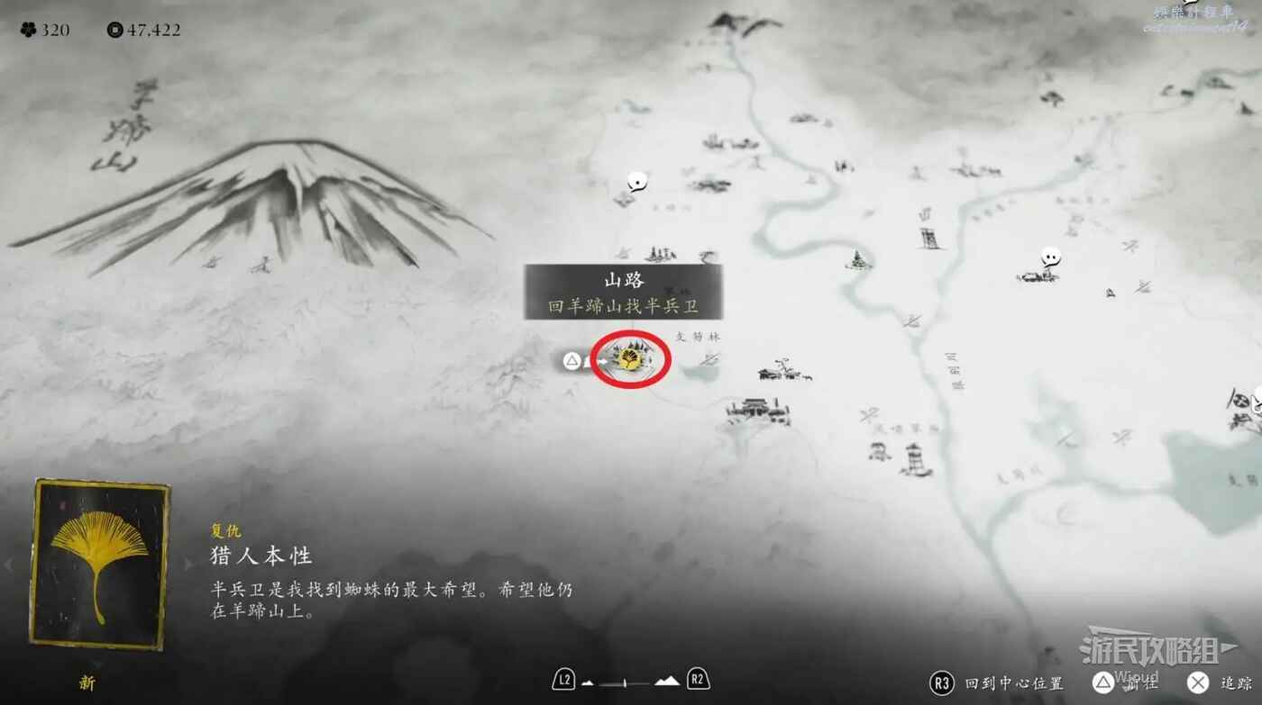 傳送到【羊蹄草原】左下角的【山路】,半路爬到頂和半兵衛對話得知蜘蛛的情報。