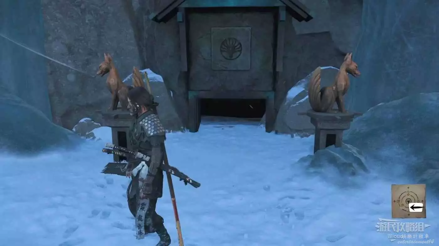 來到區域門口,將兩側狐狸雕像調成為下圖朝向,進入隧道。