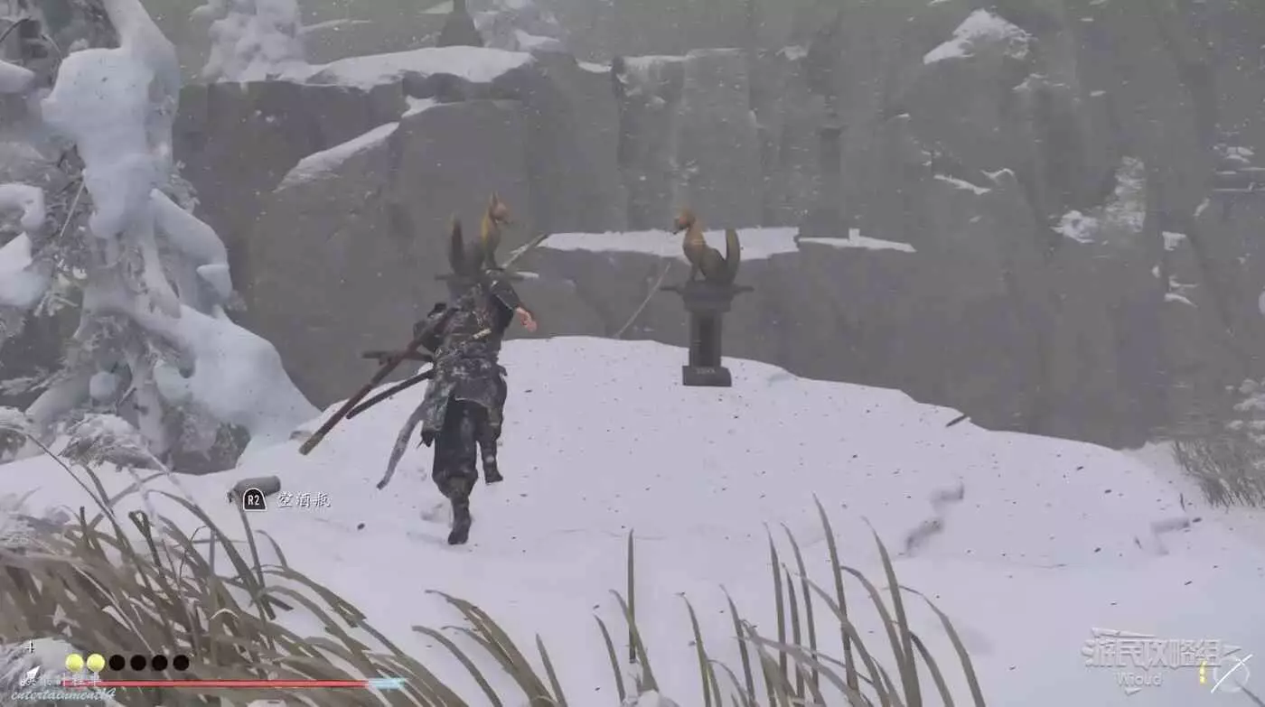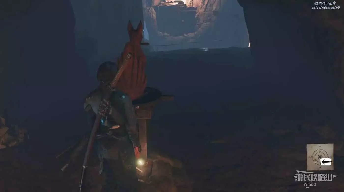 肅清敵人,找到懸崖邊的兩個狐狸雕像,將朝向改為下圖樣式,走線到達祭壇位置,啟動祭壇拿【奇趣盒子】。