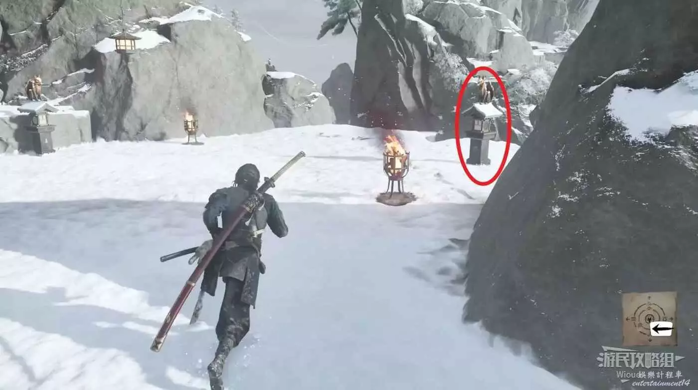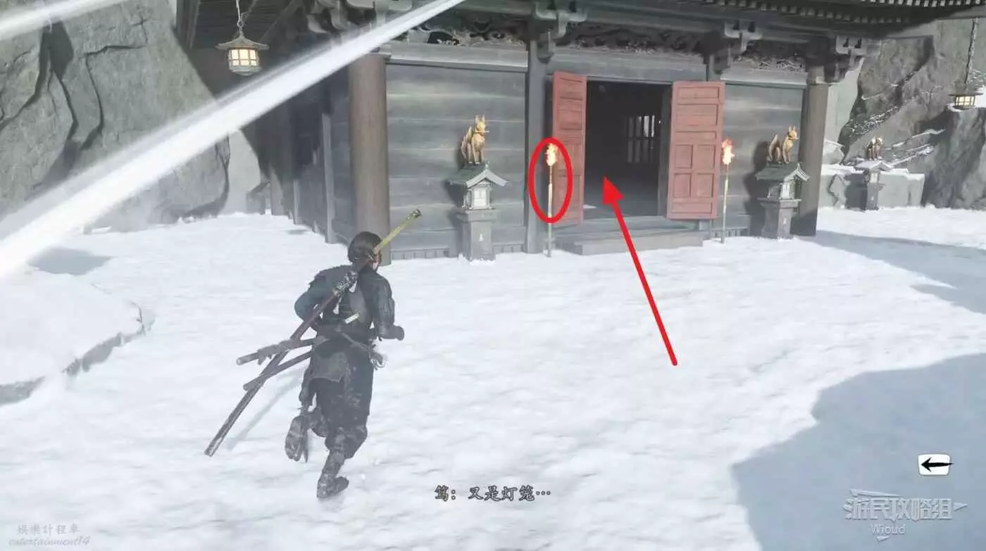到達區域先拿門口的火把,大門右側有個可以鑽進去的洞,點燃裡面的燈。