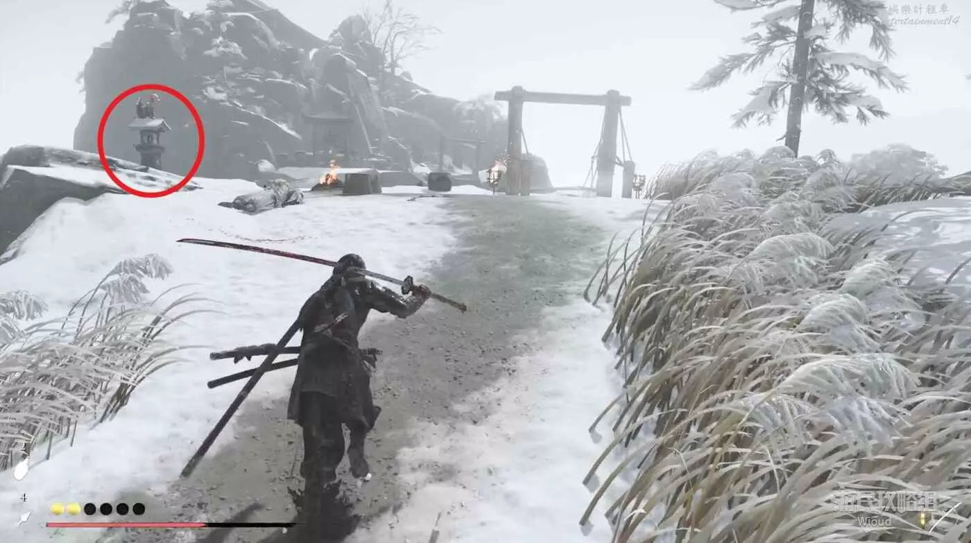 走到區域內部,肅清敵人,在通往祭壇的斷橋前,點亮左側的燈。