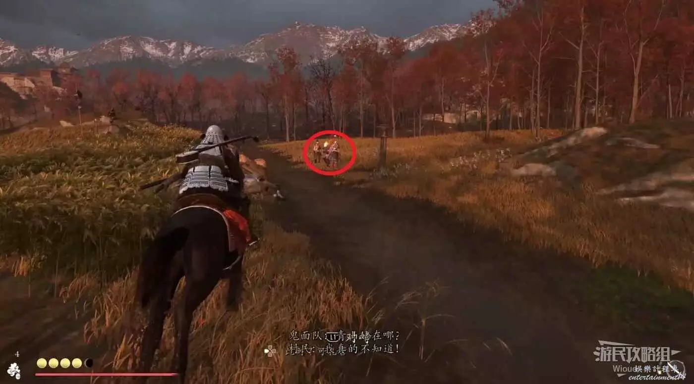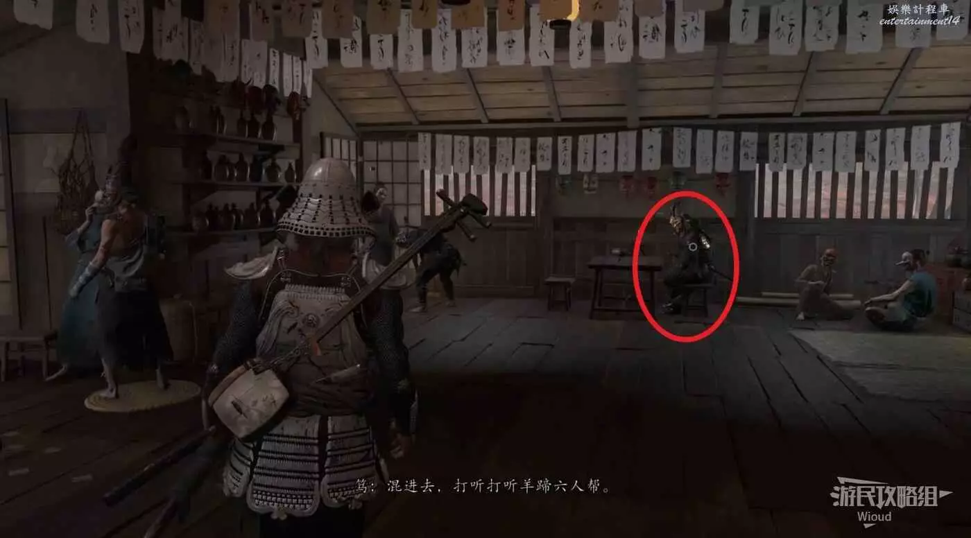 將客棧裡面的敵人全幹掉,走出客棧和旁邊小攤上的面具商人對話,得知青山姥的一些情報。