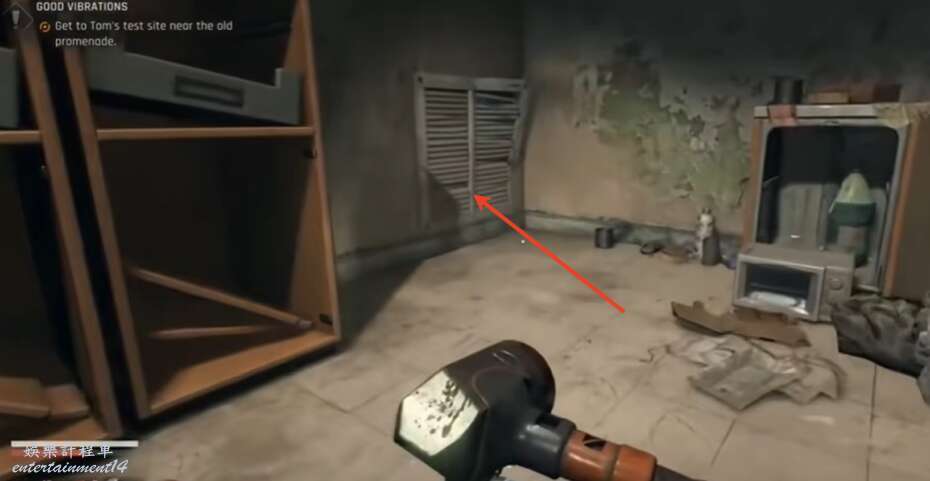 往左走在角落位置找到通風口,進入房間。