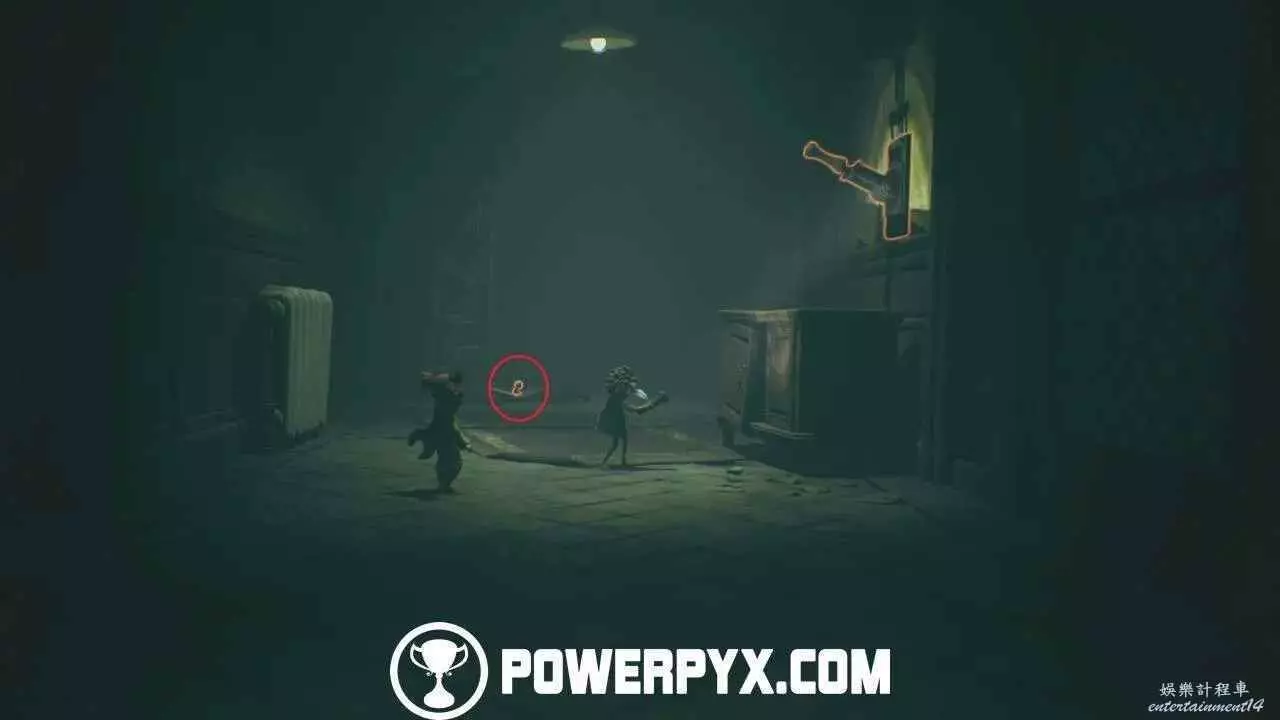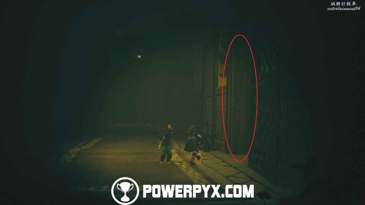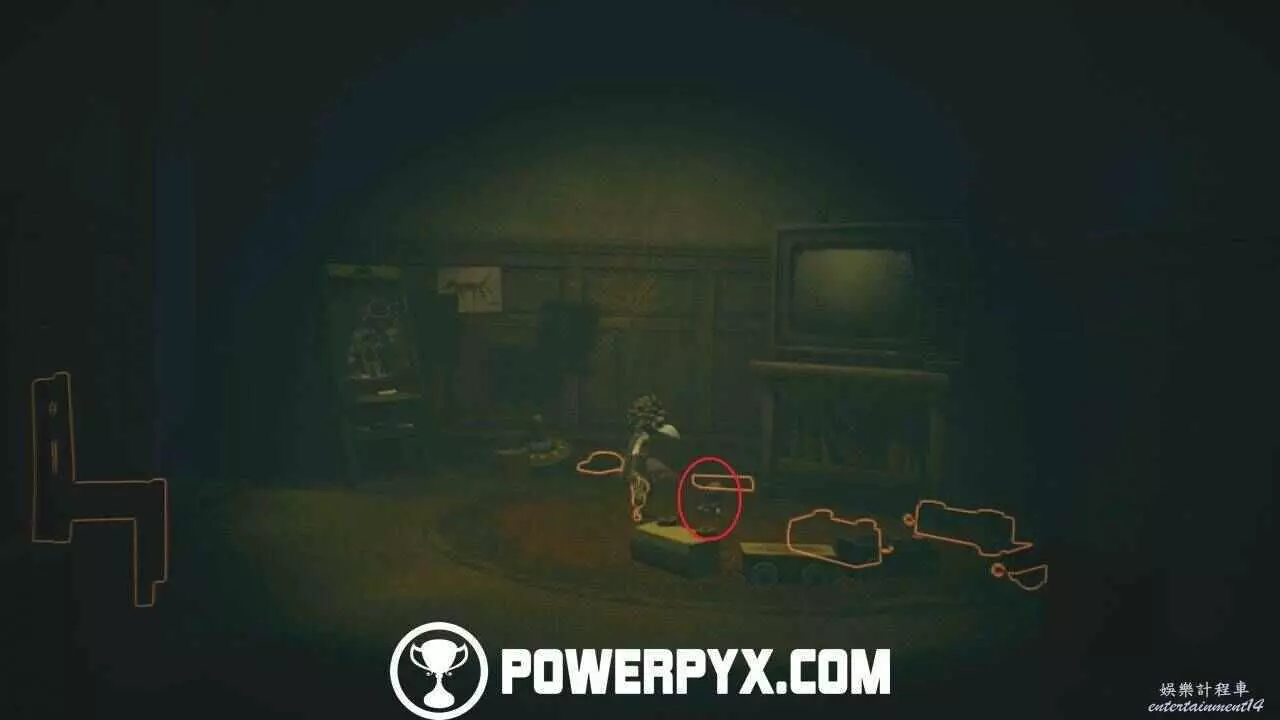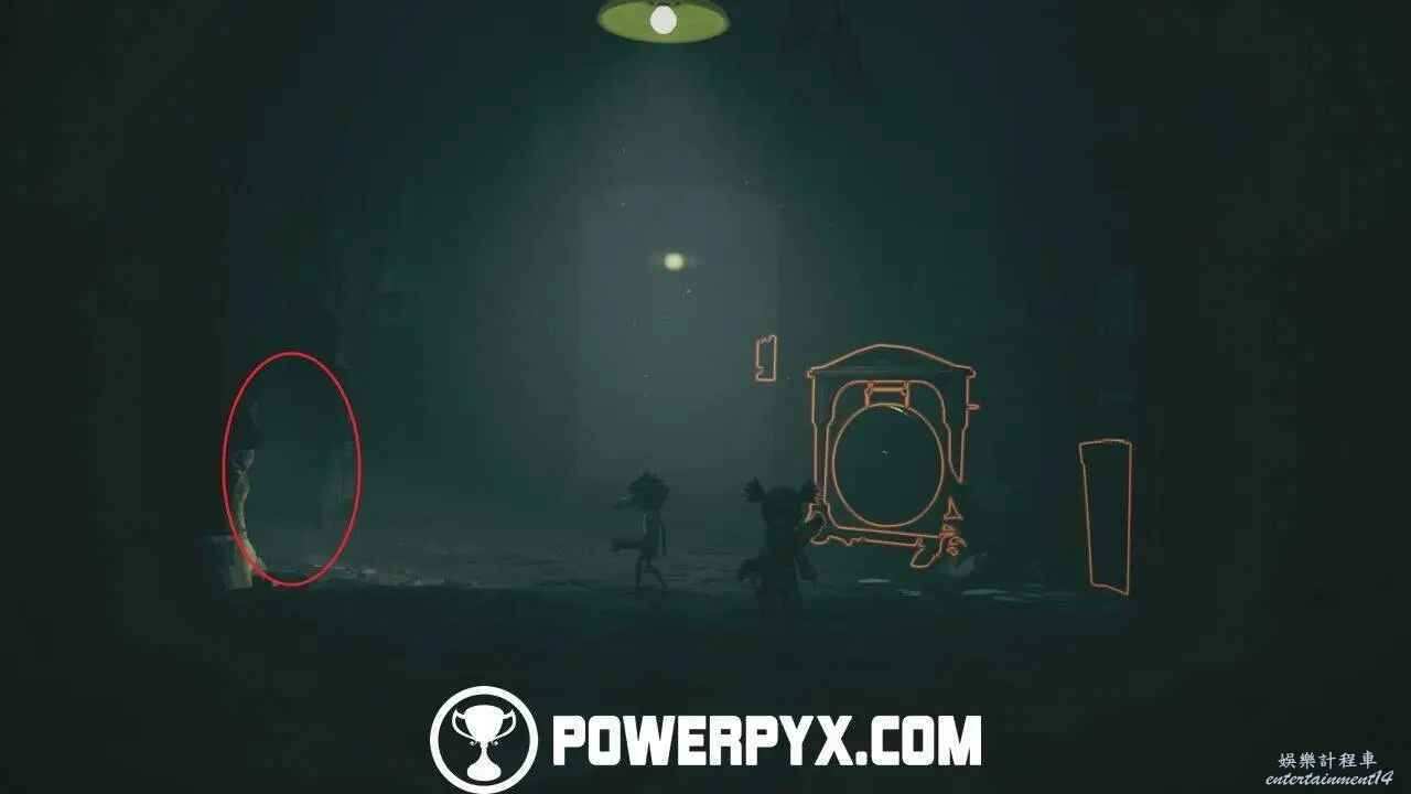 進入建築物後不久會遇到一塊需要拉下的木板,不要拉木板。先進入左側的門,來到第二個房間找到玩偶。