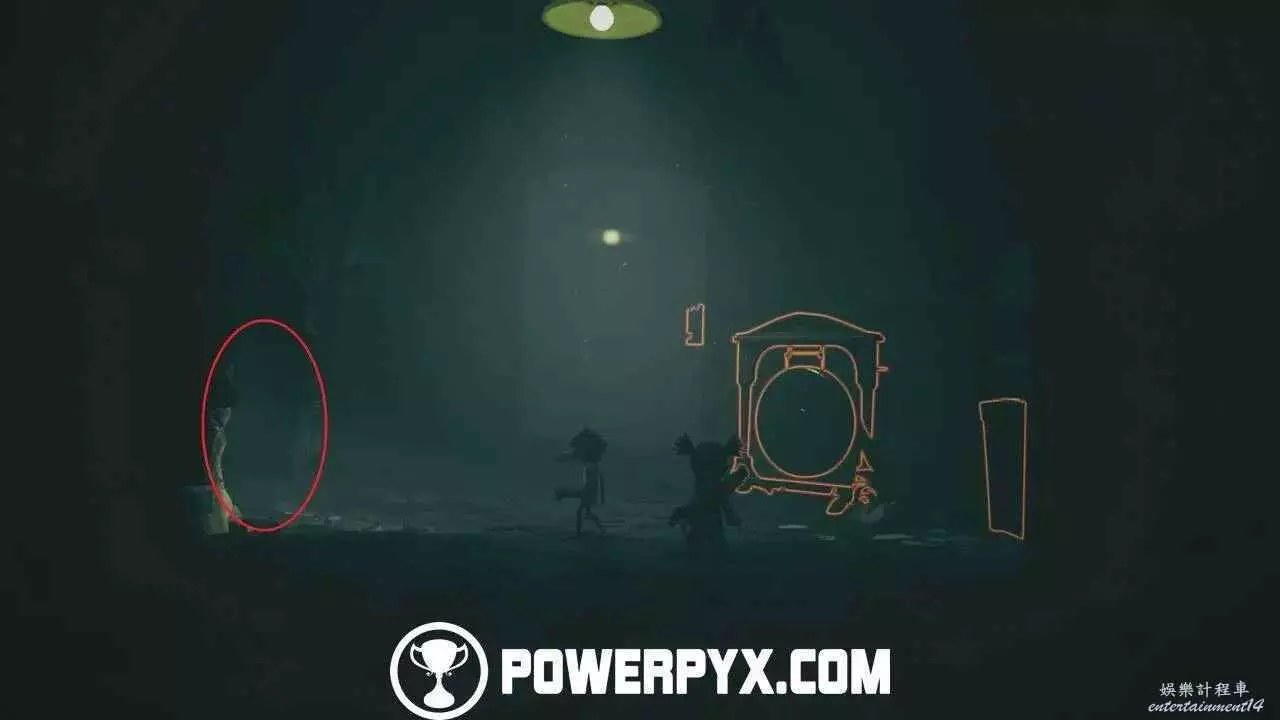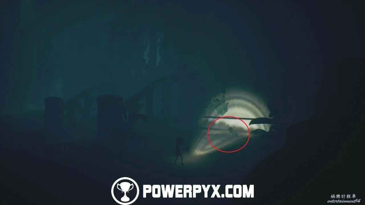 拿到第一個玩偶之後不久,爬過一個缺口,需要等待同伴處理掉一棵植物才能通過。爬過缺口後,可以在走廊的右後方角落裡找到幽靈。