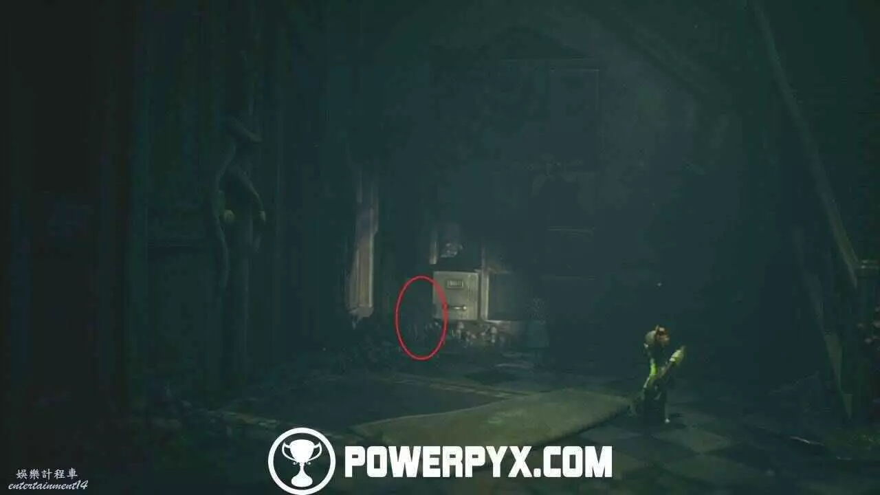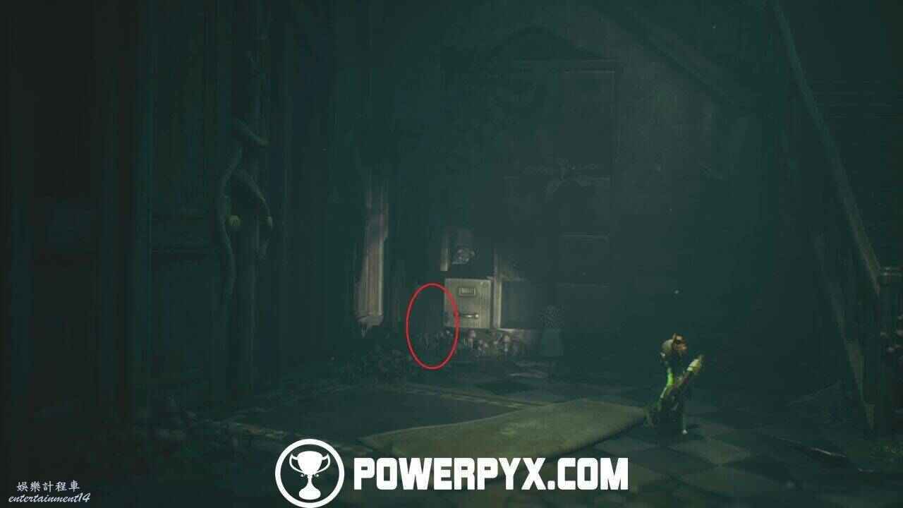 在被BOSS的手追逐並掉落到一個新區域後,來到往上走的樓梯,不要上樓梯,先進入房間的左上角,在角落裡可以找到幽靈。