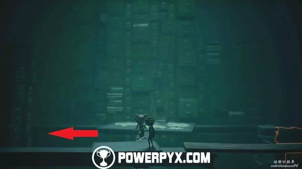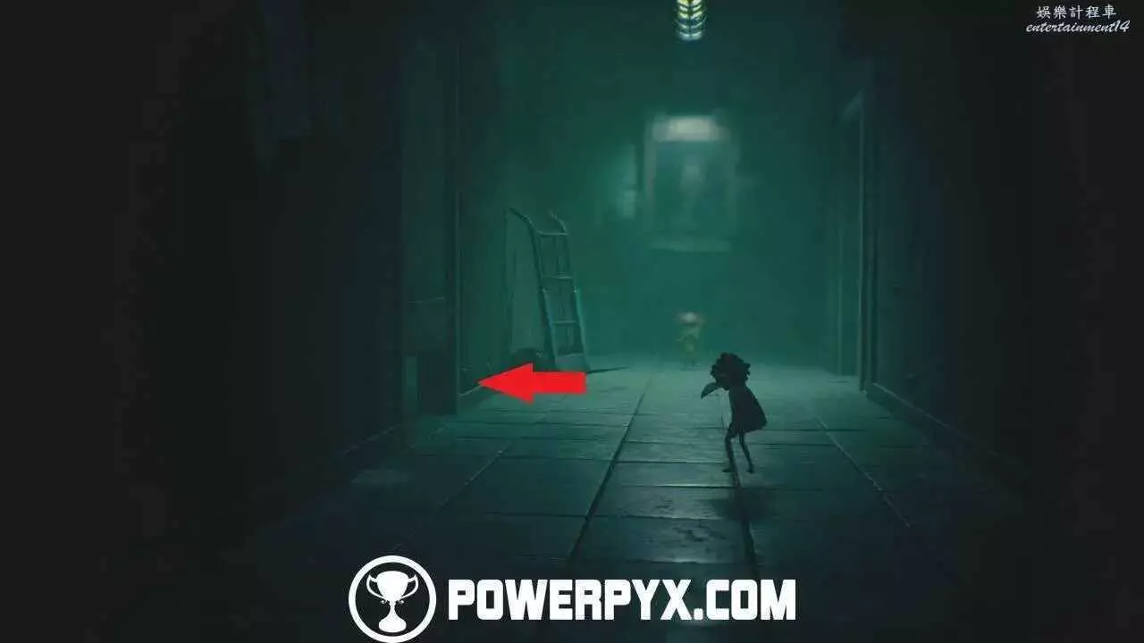 使用兩個保險絲恢復電梯供電後不久來到室外區域,在這裡不要向下走,先向上走,穿過一扇窗戶可以找到玩偶。