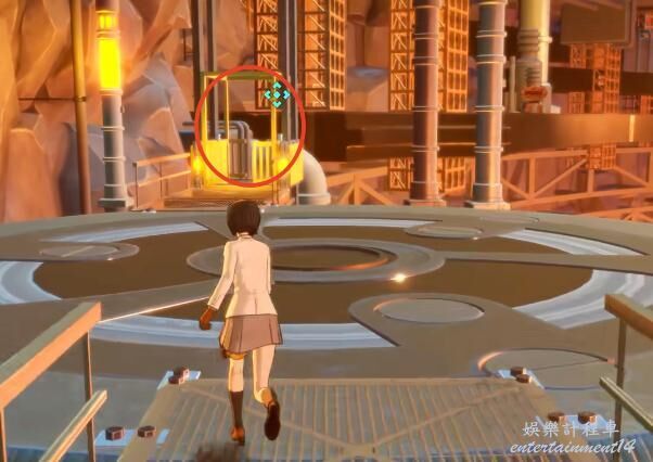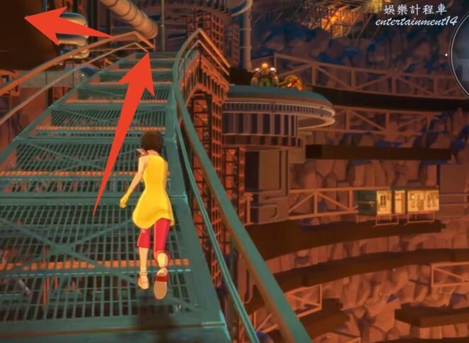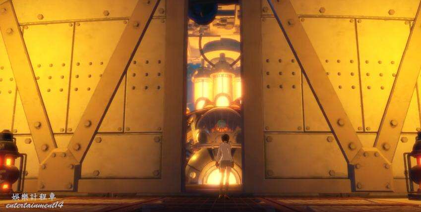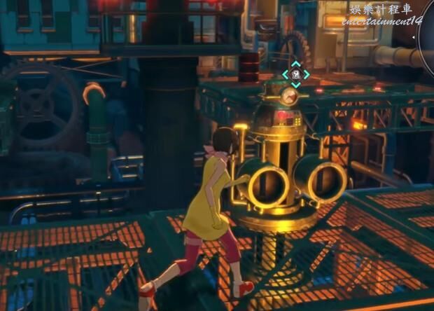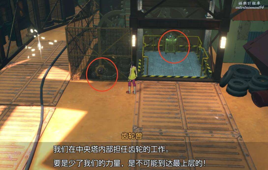 向前走,和齒輪獸交流後得知,我們需要接著齒輪獸了力量才能到達最上層,我們從旁邊的電梯先上去。