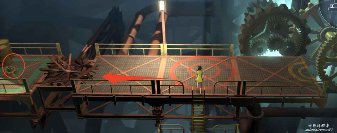 接著往上我們可以看到第三給齒輪,將它抱到箭頭處,然後向左走。