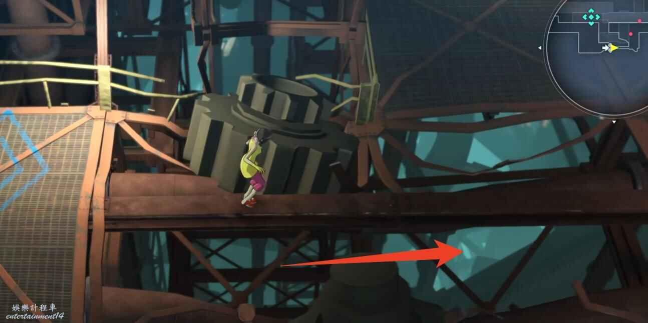 放到上層大齒輪中,緊接著做左邊的電梯上去。到新區域後一路往上走,觸發cg。