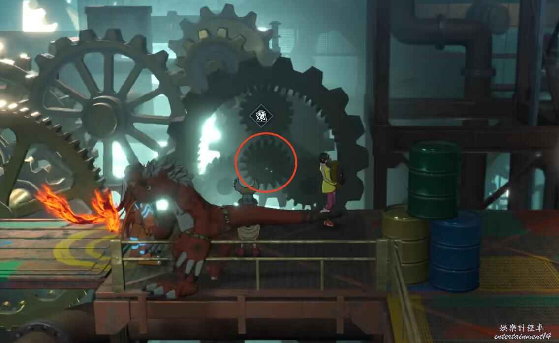 抱起齒輪獸將其放在右邊的大齒輪上,路就打開了