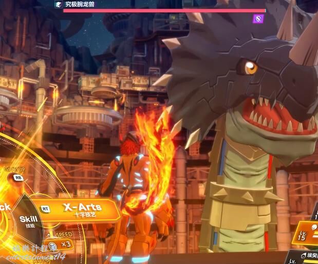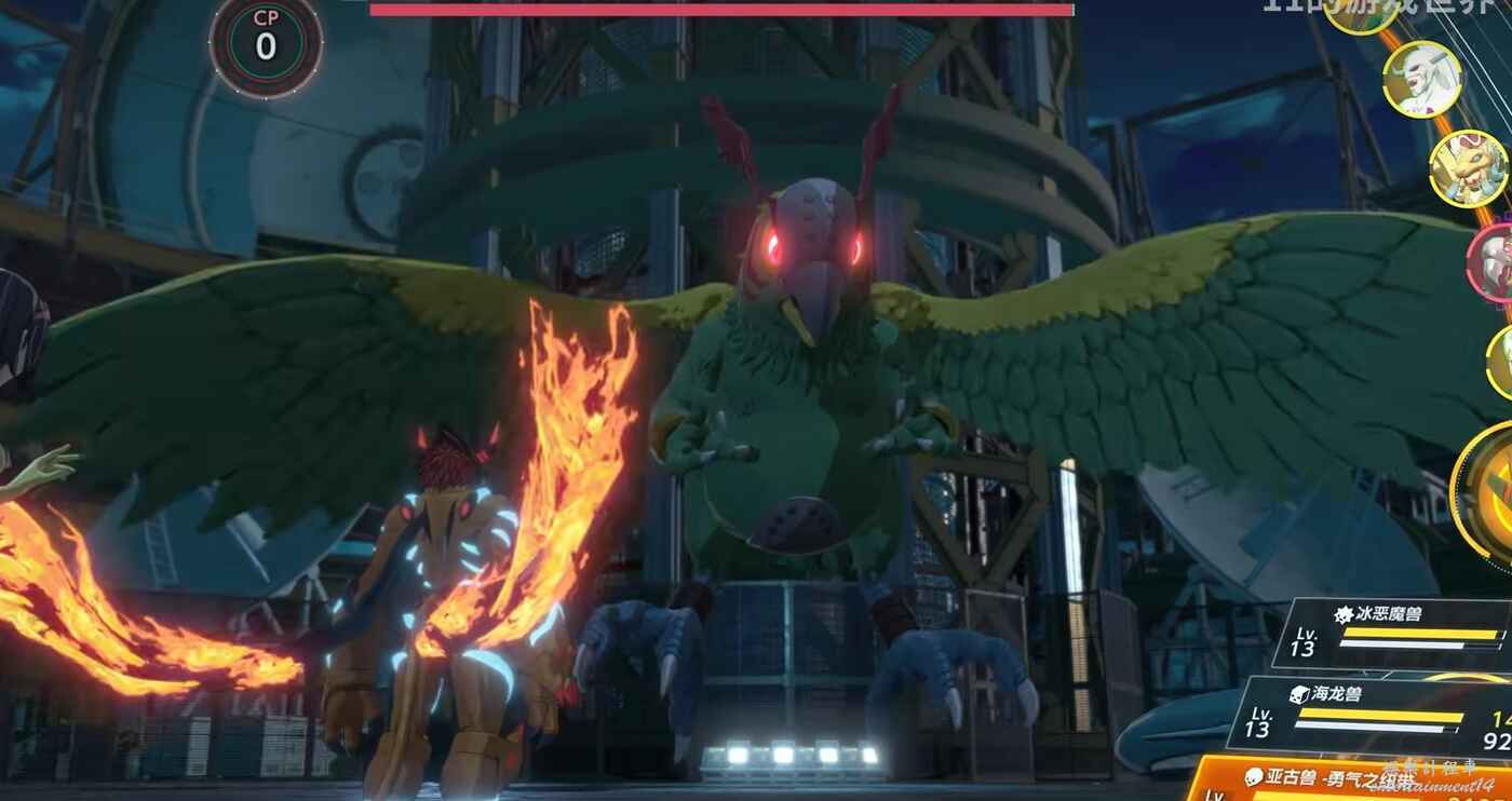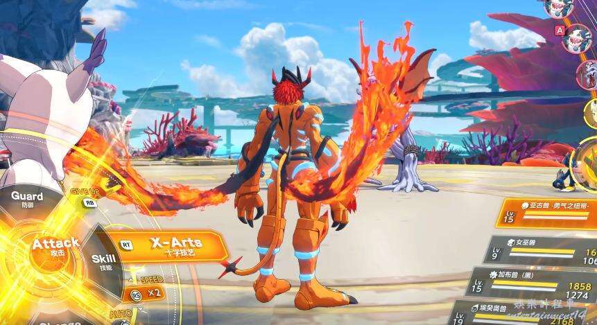 接著往前觸發cg,我們看到一群數碼寶貝在亂戰,一直古加獸來襲擊我們