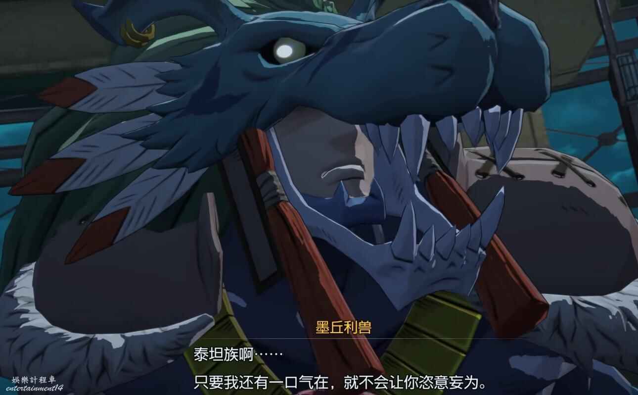 來到盡頭,我們看到鯊魚獸,對話得知,泰坦族在尋找一個叫做氣脈的東西,此時半魚獸勸說阿祖收手吧,不過鯊魚獸篤定吃定我們了,於是開始戰鬥。