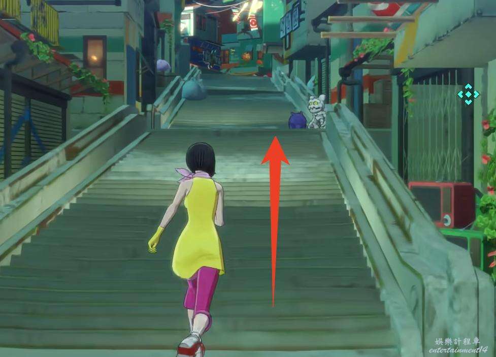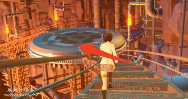 進入新區域後一路往上,這條路沒岔路,一直沿著樓梯走就行。最後做電梯往上
