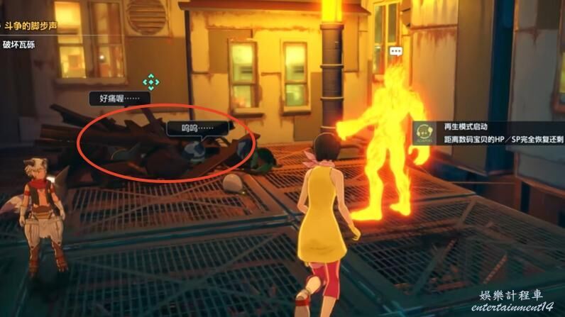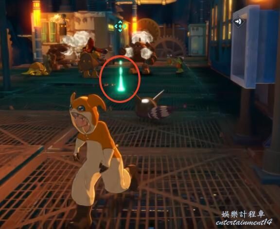 進入房間後一路向前出去,我們就能遇到剛才看見的數碼寶貝,使用“數碼攻擊”打破殘骸。