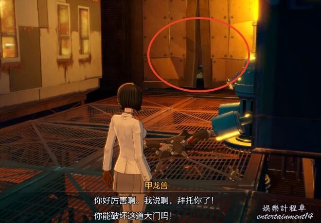 與少女對話後,我們通過“數碼攻擊”來打破門。