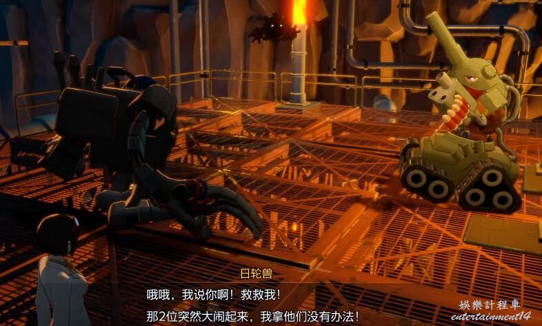 然後一路向前,我們會遇到守衛機器人獸,我們表面了自己的來意,他告知它們的首領武爾坎努斯獸貌似停止了動力供應,我們需要前往底層的控制室查看,但是在此之前需要幫助負責操作隔絕壁的小揪形獸,我們需要先送過去維修的零件。