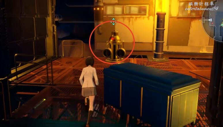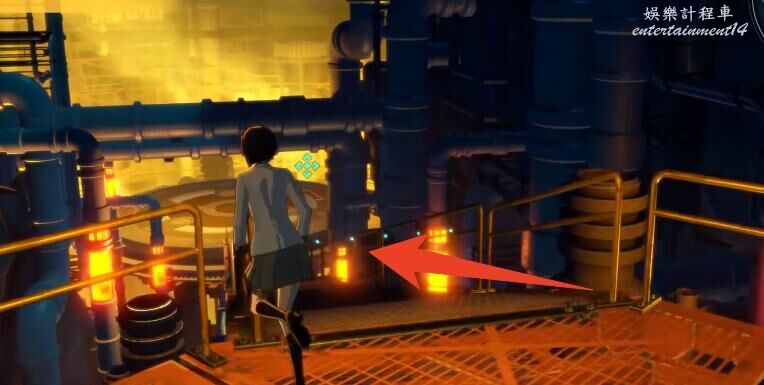 我們往左邊走,通過門後來到管道,往前方左側的逃生通道走,進入下一區域。