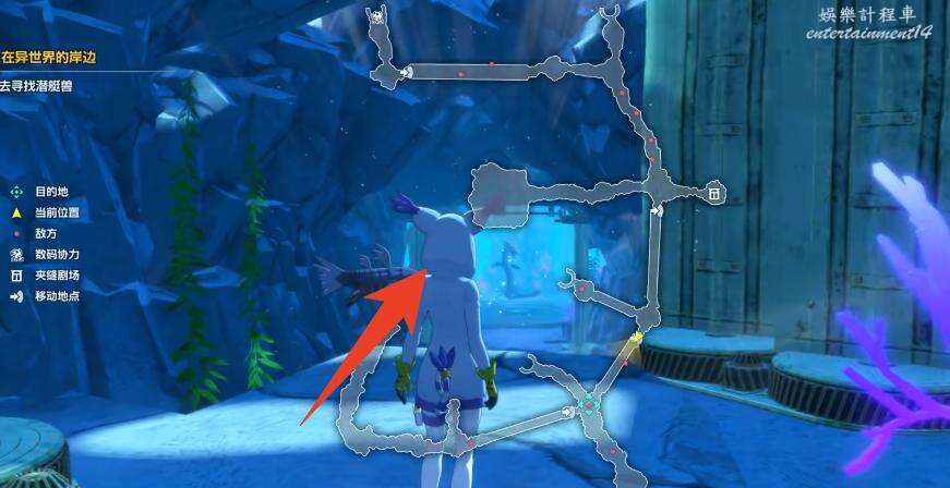 走到盡頭可以看到一個破損的牆壁,使用“數碼攻擊打破”