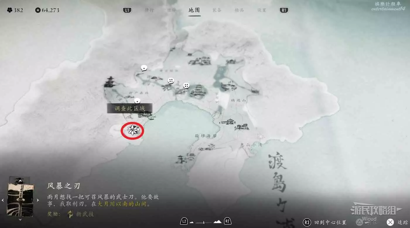 該任務接取位置如下圖所示,在【渡島海岸】左下角的【遺忘神社】。