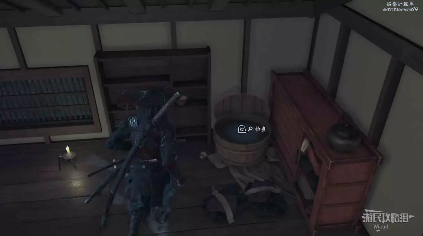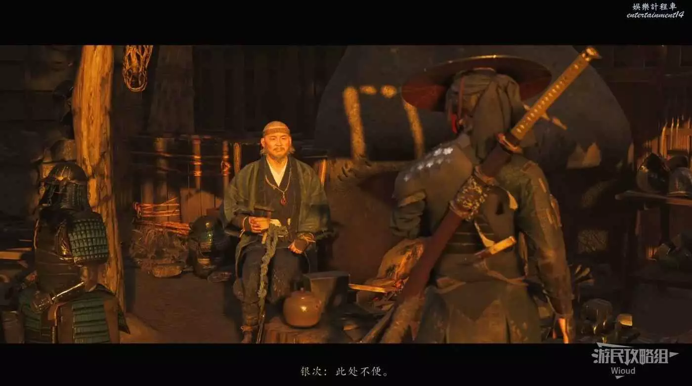 裡面和銀次對話,然後和旁邊放滿茶葉的盆互動獲得【銀次的防護鎧甲】。