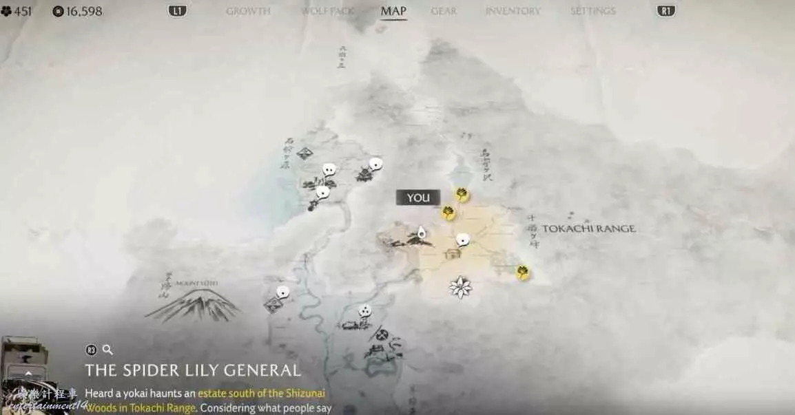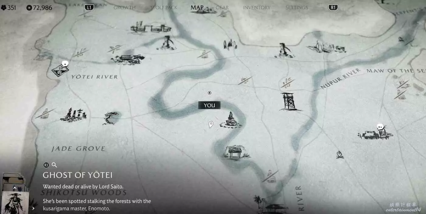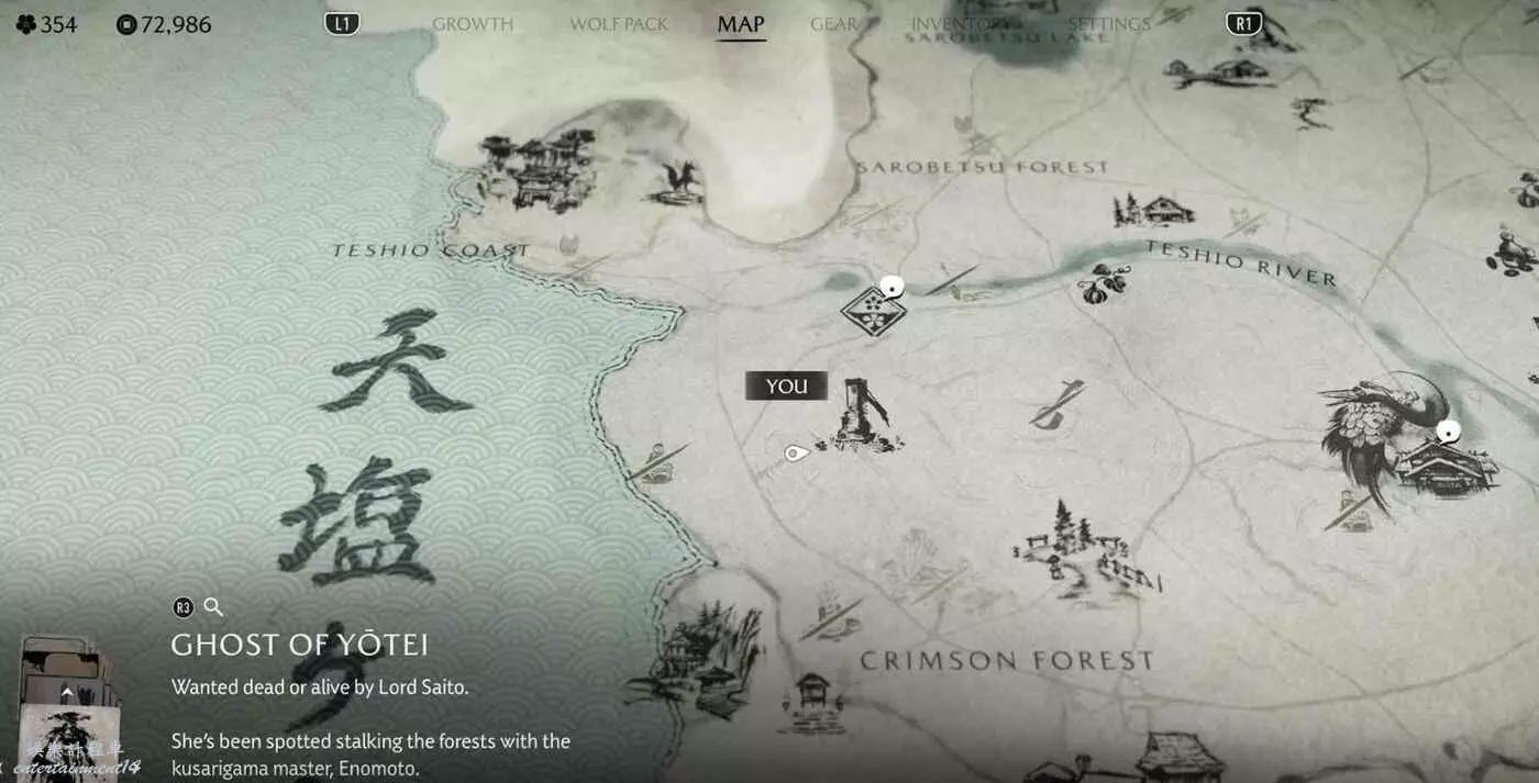 在地圖上【名寄瀑布】四個字的正東方,在地圖最東側邊緣尋找插著箭矢的木樁。