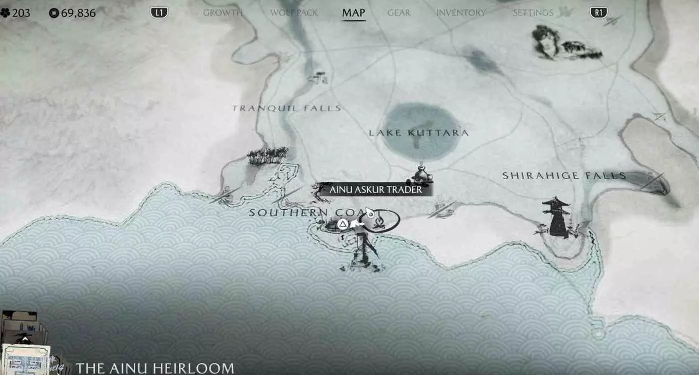 先去地圖標記處和老人交談,接著到懸崖盡頭亡者之柱附近找阿伊努物品。